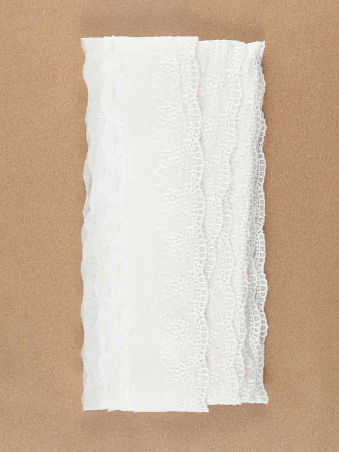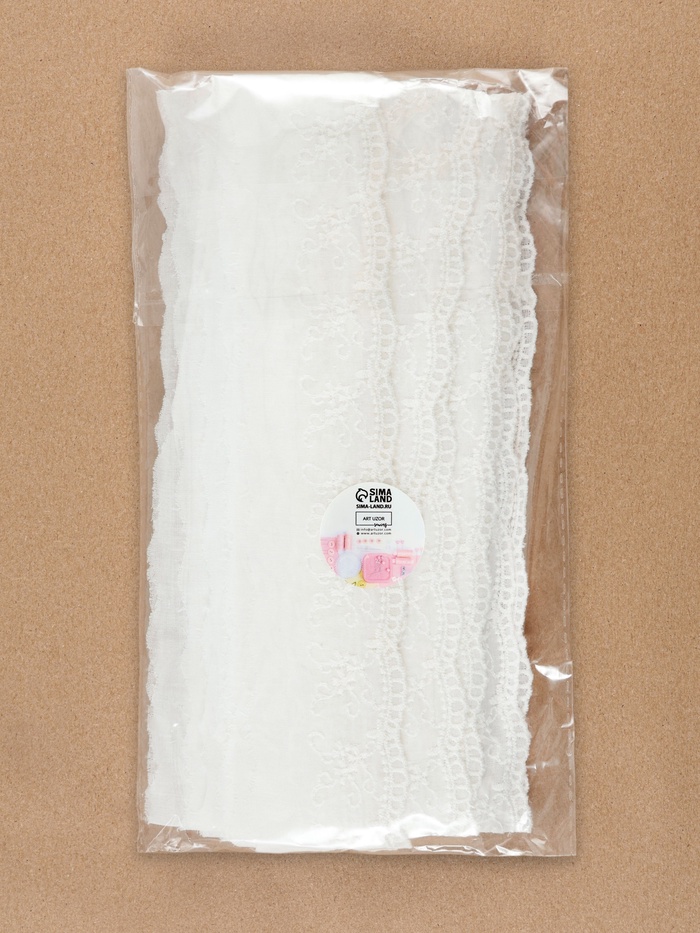 Это кружевное полотно из хлопка открывает двери в мир элегантности и утончённости. Лента шириной 50 мм и длиной 13,7 м станет изысканным дополнением к вашим швейным проектам, добавляя в них легкость и натуральную текстуру хлопка.