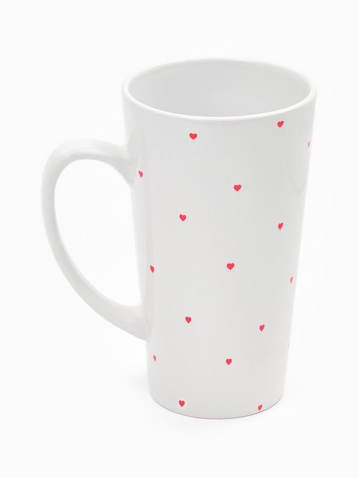 - Рисунок придаёт каждой кружке лёгкую индивидуальность: сердечки могут чуть различаться по размеру или наклону — это не недостаток, а признак живой работы.