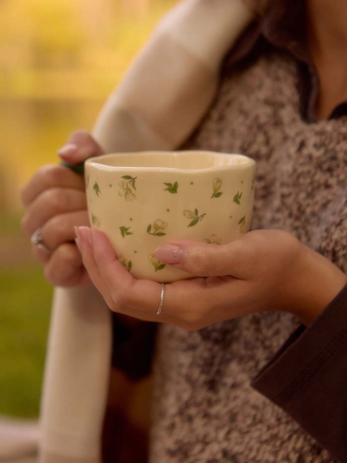- Керамическая чашка с гладкой поверхностью — приятно ложится в руку, не скользит.