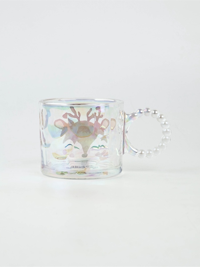 Новогодняя стеклянная кружка с формовой ручкой и голографией — идеальный выбор для новогодних праздников. Объём 300 мл и необычный дизайн кружки делают эту кружку прекрасным подарком для ваших друзей и близких.