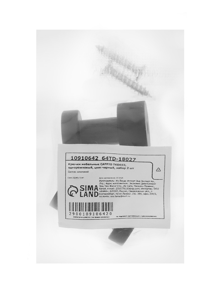Крючки мебельные CAPPIO TKD033, однорожковый, цвет черный, набор 2 шт