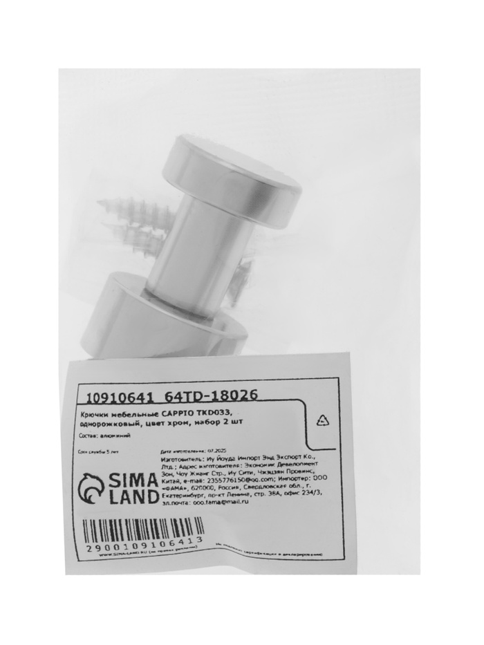 Крючки мебельные CAPPIO TKD033, однорожковый, цвет хром, набор 2 шт