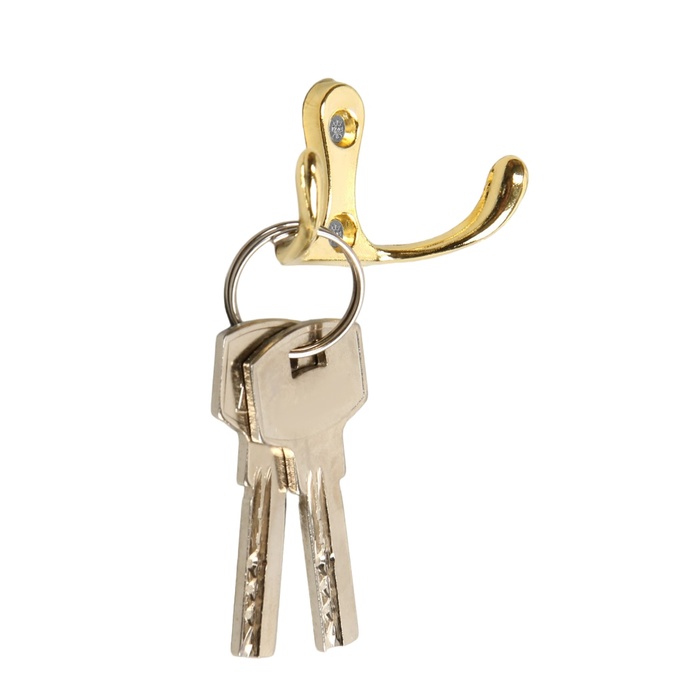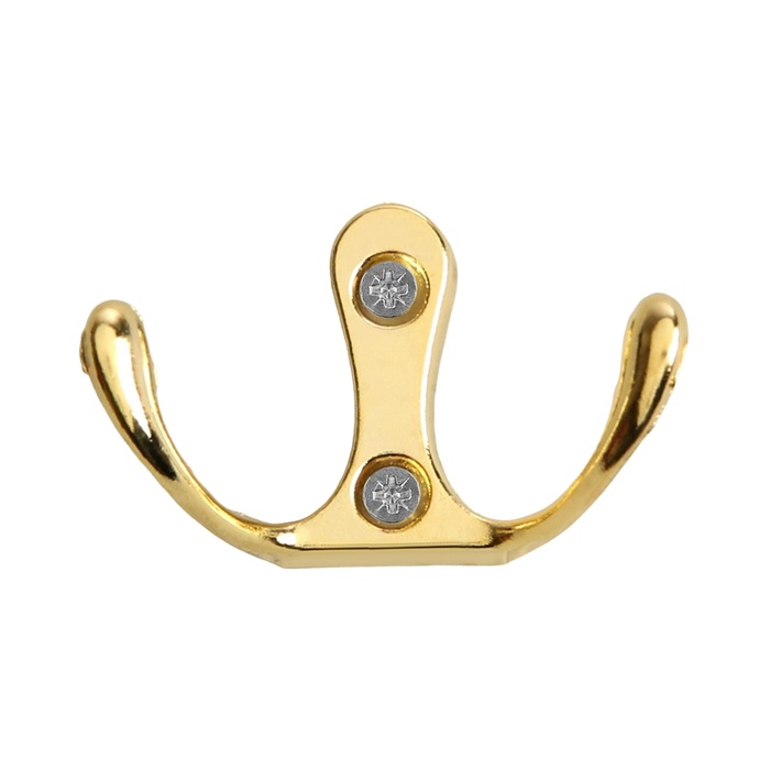 Крючок мебельный ТУНДРА TKD005, двухрожковый, золото, 5 шт