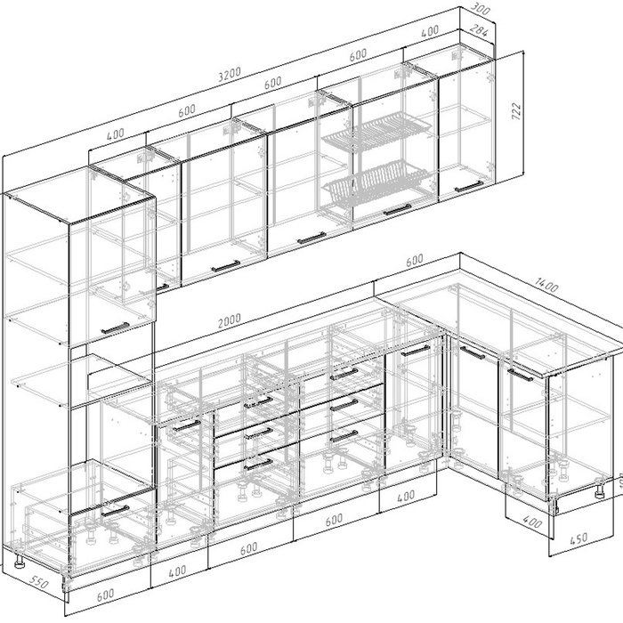 Кухонный гарнитур 3200х1400 мм МУССОН столешница Вотан 38мм