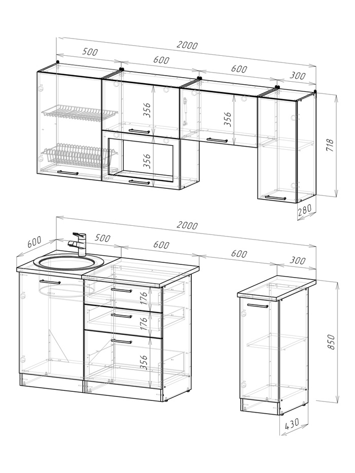 Кухонный гарнитур Жасмин прайм 1100*2000 мм