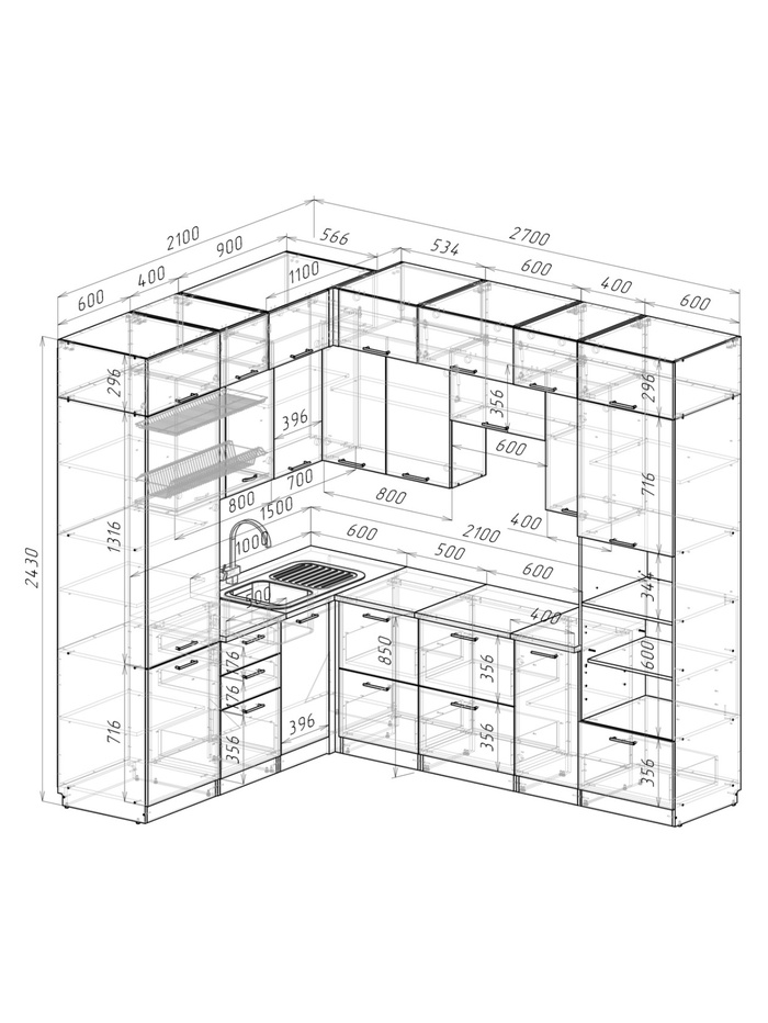 Кухонный гарнитур Лотос гарнд прайм 2100*2700 мм