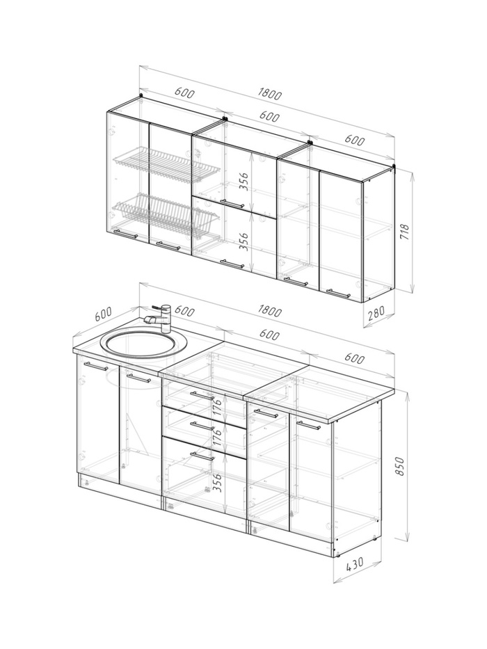 Кухонный гарнитур Лотос макси 2 1800 мм