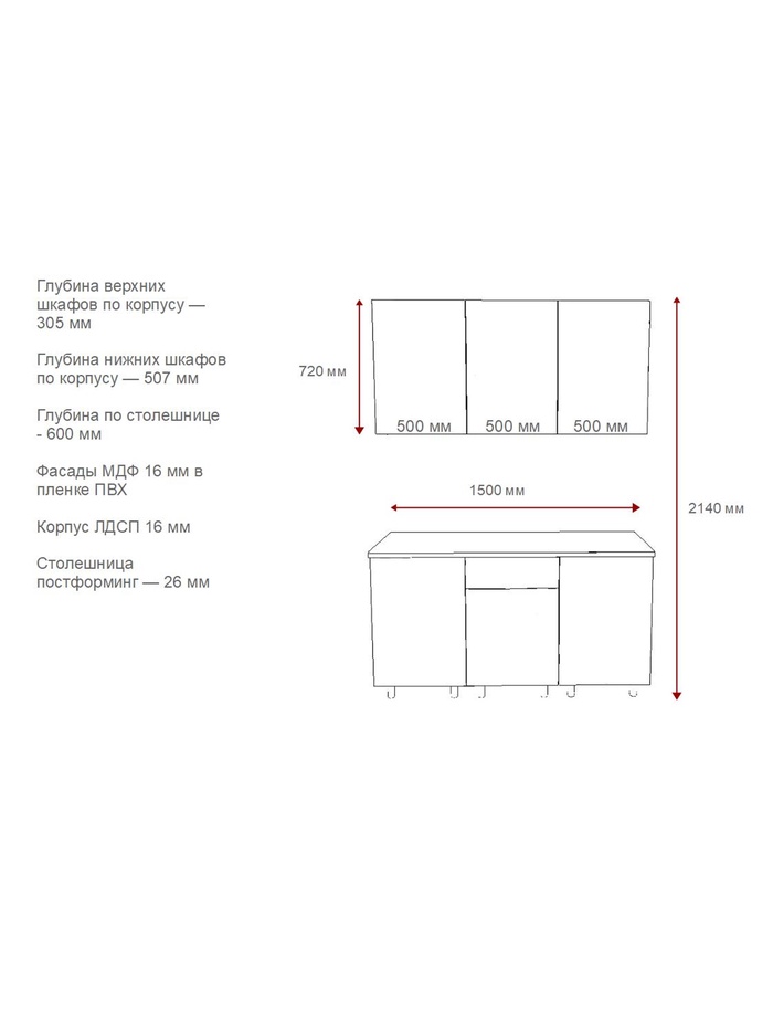 Практичное решение для организации кухонного пространства. Продумнная компоновка и модульная система позволяют адаптировать гарнитур под особенности помещения и индивидуальные задачи.