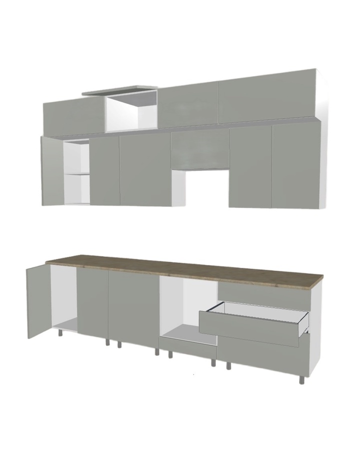 Практичное решение для организации кухонного пространства. Продумнная компоновка и модульная система позволяют адаптировать гарнитур под особенности помещения и индивидуальные задачи.