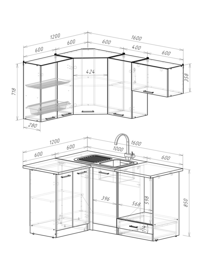 Кухонный гарнитур Лотос стандарт 1600 мм