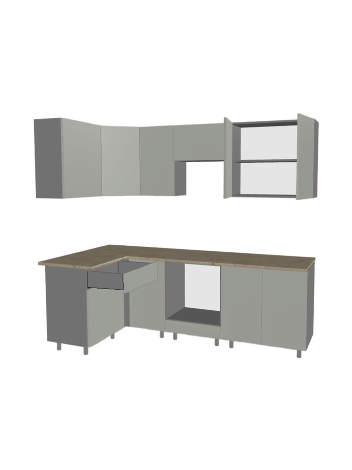 Практичное решение для организации кухонного пространства. Продумнная компоновка и модульная система позволяют адаптировать гарнитур под особенности помещения и индивидуальные задачи.