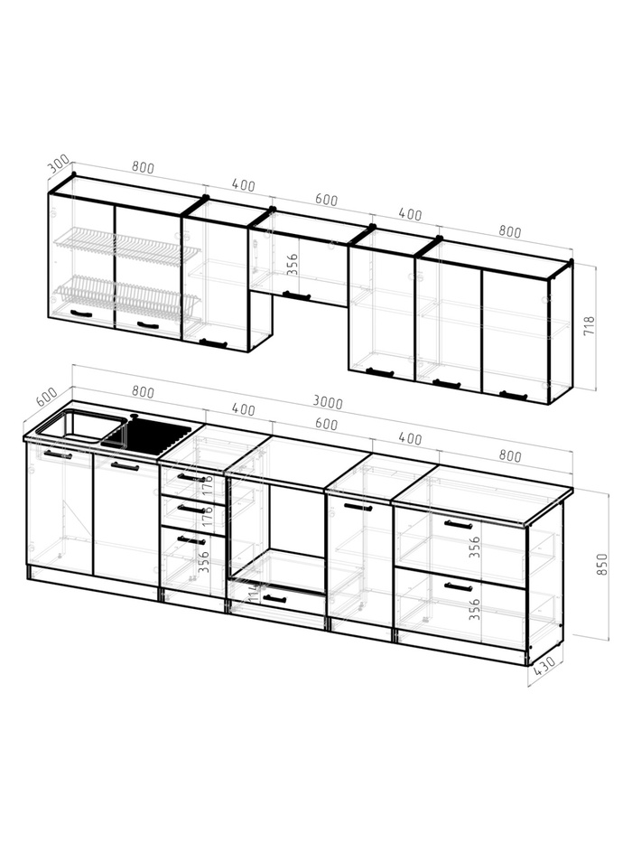 Кухонный гарнитур Жасмин Экстра 1 3000мм