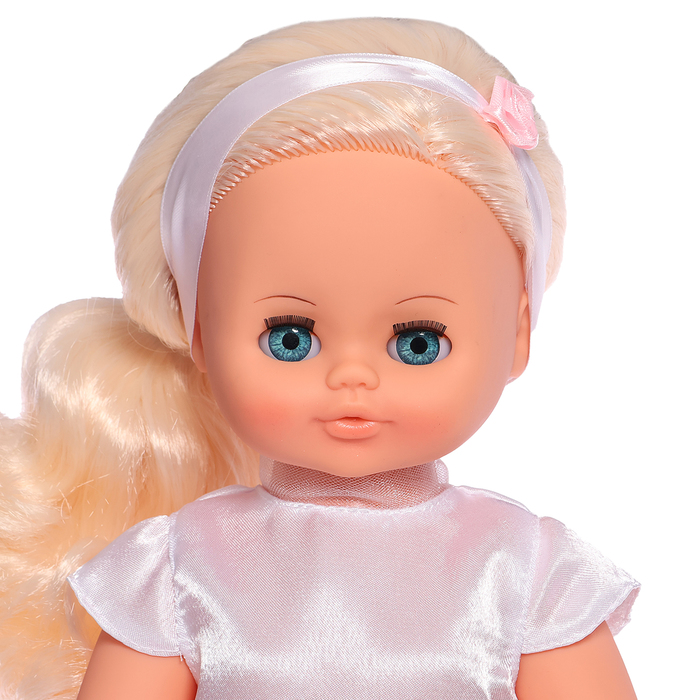 «Алиса 20» — идеальный компаньон для летних прогулок по парку или участия в праздниках. Кукла одета в нарядное платье из шёлка и сетки и белые туфельки. Атласный ободок украшает её голову и завершает образ. Все вещи легко снимать и надевать.