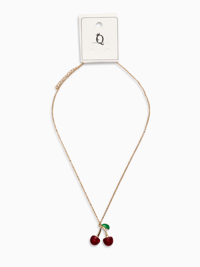 Кулон на цепочке "Черешня", цвет бордово-зелёный в золоте 40+удл