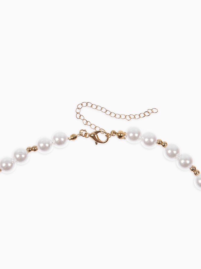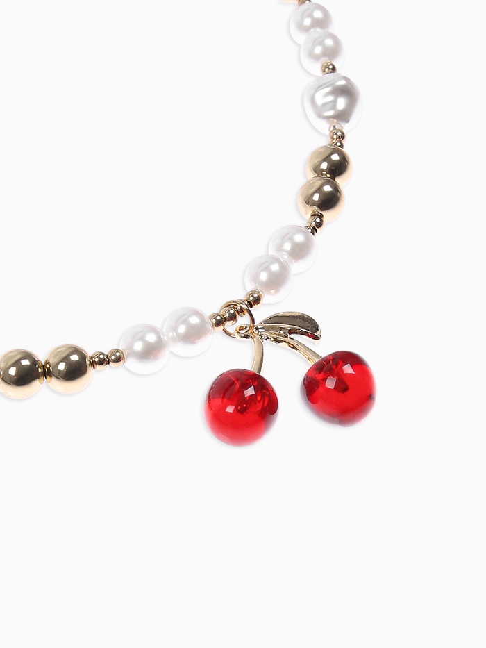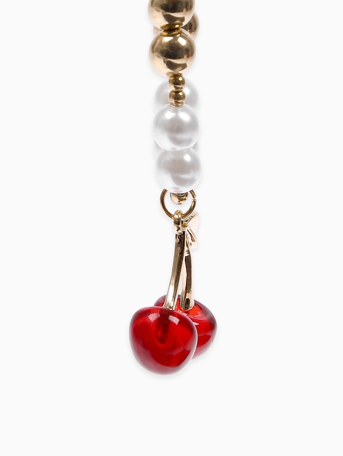 - Оттенок золота: Края металлических частей окрашены в тёплый золотистый цвет, выгодно подчёркивая переливы белых искусственных жемчужин и красных вишневых элементов.