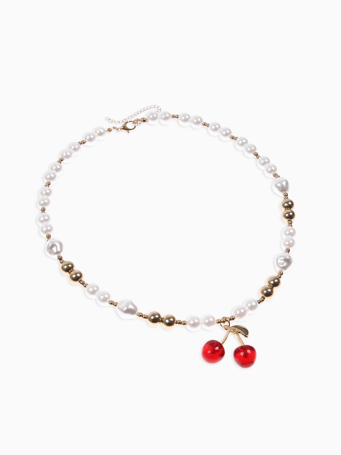 Пусть ваши украшения говорят сами за себя! Белые жемчужные бусы с подвеской «Вишня» станут незабываемым акцентом вашего образа. Эти бусы удивляют сочетанием классического белого оттенка жемчуга и ярко-красных элементов подвески, символизирующих спелость и сладость вишни. Все компоненты аккуратно собраны на металлической основе, окрашенной в приятный оттенок золота, придавая этому украшению особую элегантность и утончённость.