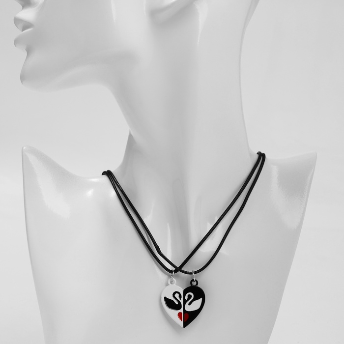 Ключевым элементом кулонов является изображение лебедей, находящихся в сердце, выполненном из белой и черной эмали. Такое сочетание цветов символизирует чистоту и элегантность, отражая внутреннее состояние влюбленного человека.