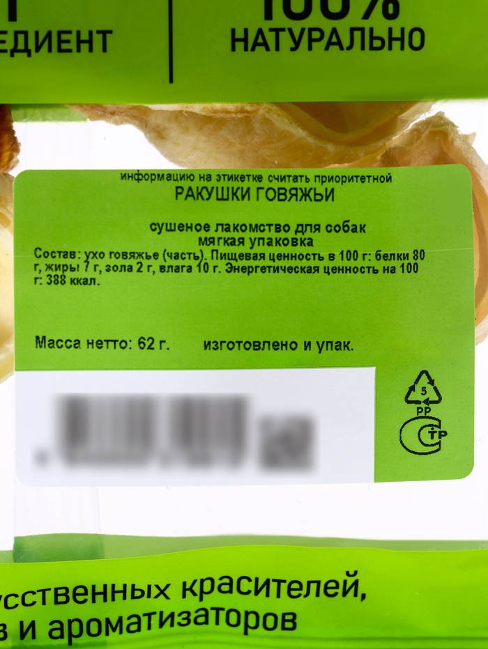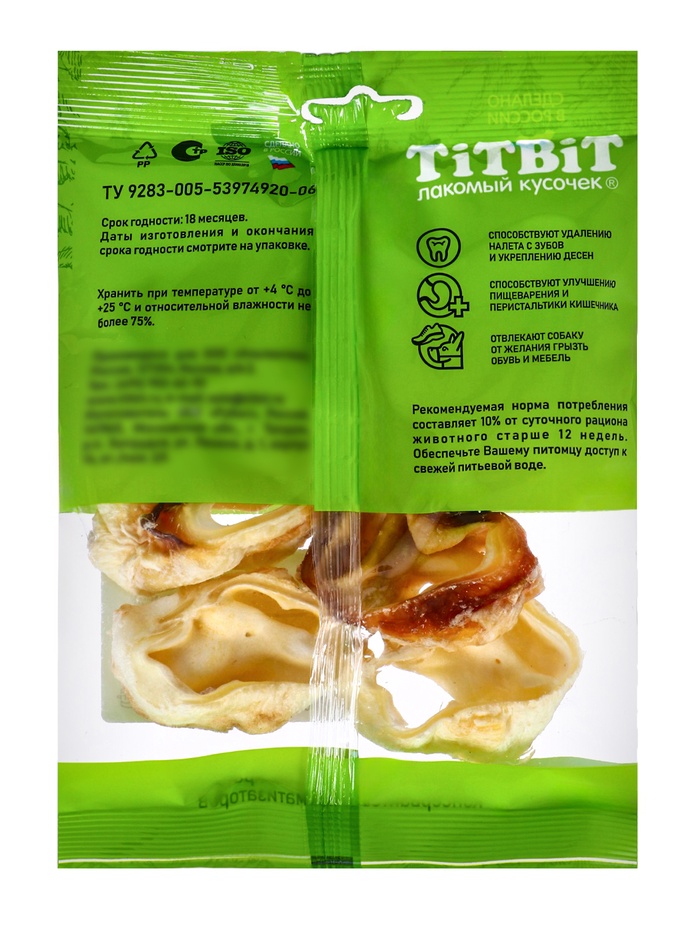 Упаковка содержит высушенные хрящевые основания говяжьих ушей. Высокое содержание коллагеновых и эластиновых волокон обеспечивает поступление в организм незаменимых компонентов для роста и поддержания качества хрящевой ткани суставов Вашего питомца. Рекомендовано с целью облегчения смены зубов у щенков, укрепления десен, очистки зубов от пищевого налета и зубного камня, дополнительного питания и укрепления хрящевой ткани собак среднего и старшего возраста. Высокое содержание коллагена и эластина способствует улучшению формирования ушного хряща для пород собак, стандартом которых предусмотрен вертикальный постав ушной раковины.