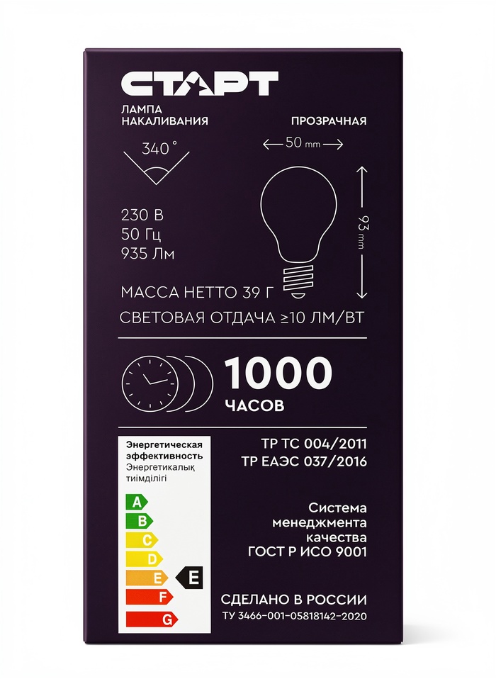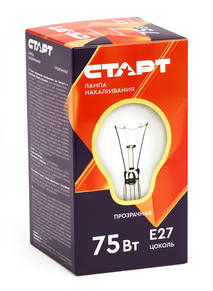 Лампа накаливания СТАРТ, Б, Е27, 75Вт, 230В