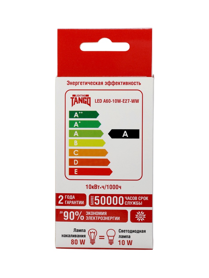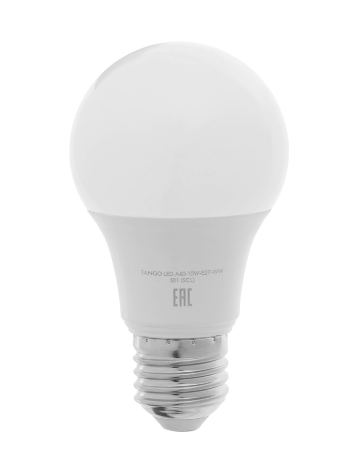 Лампа светодиодная TANGO, А60, 10 Вт, E27, 950 Лм, 6500K, IP20, свечение холодное белое, матовое сте