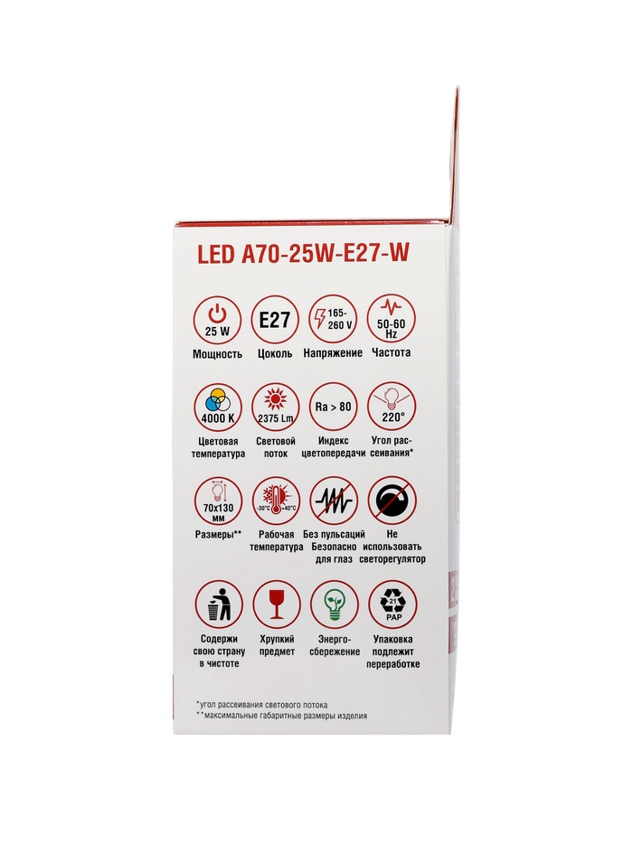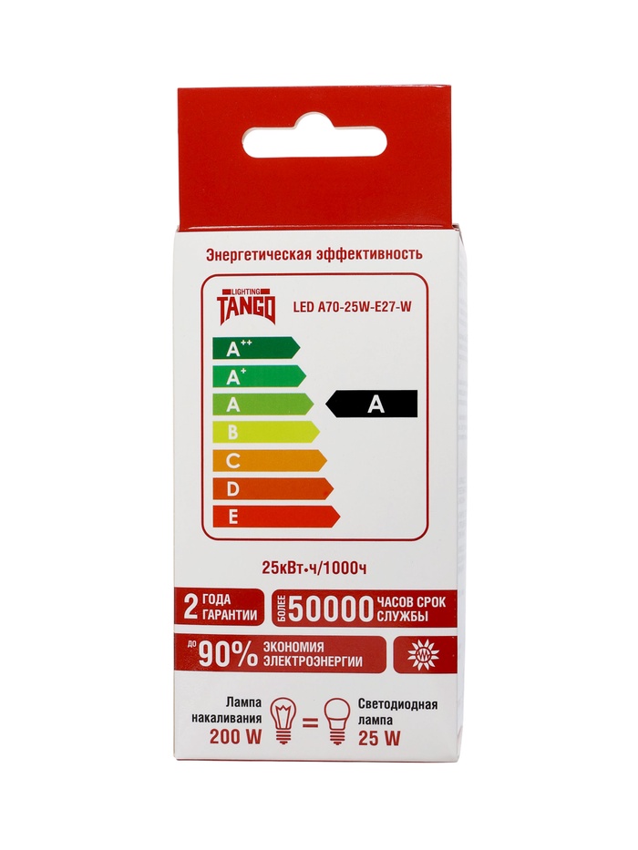 Лампа светодиодная TANGO, А70, 25 Вт, E27, 2375 Лм, 4000K, IP20, свечение нейтральное белое, матовое