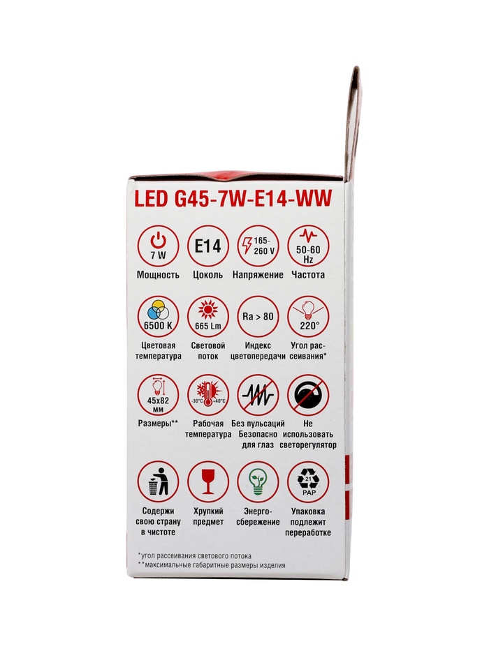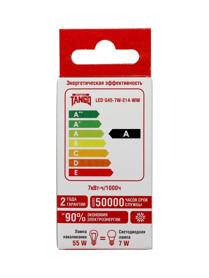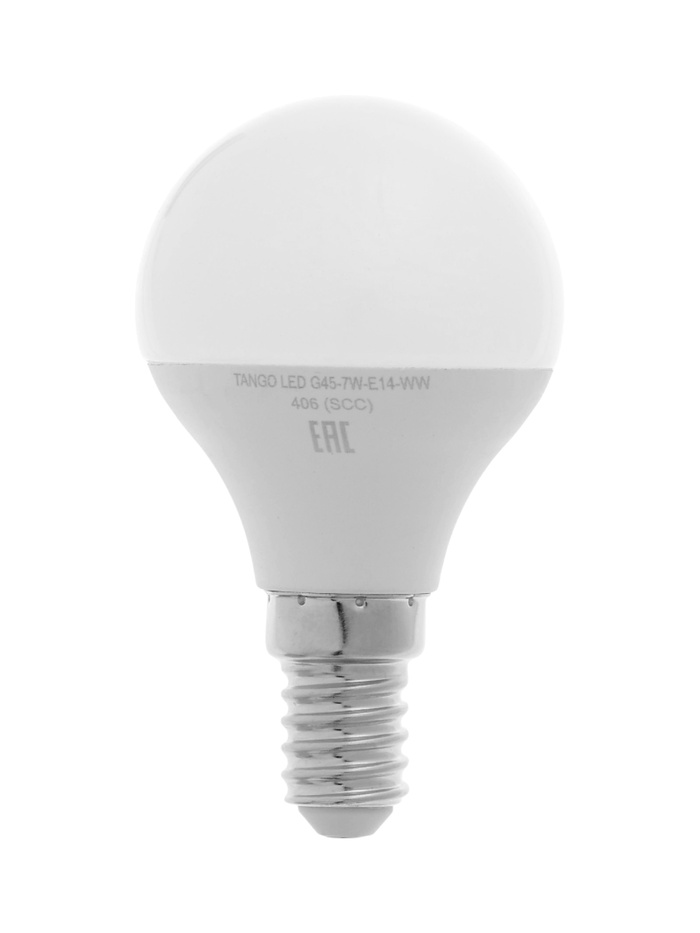 Лампа светодиодная TANGO, G45, 7 Вт, E14, 665 Лм, 6500K, IP20, свечение холодное белое, матовое сте