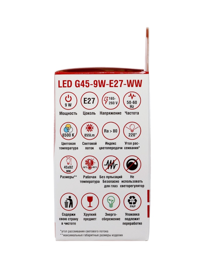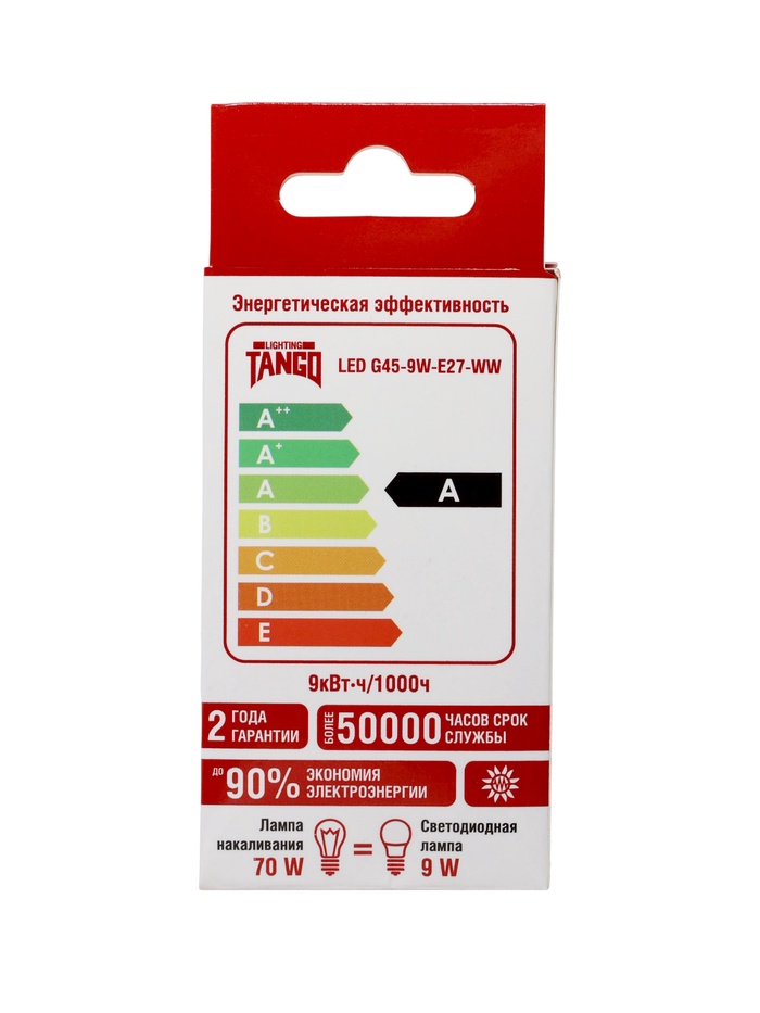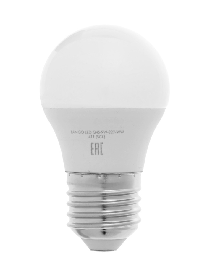 Лампа светодиодная TANGO, G45, 9 Вт, E27, 855 Лм, 6500K, IP20, свечение холодное белое, матовое сте