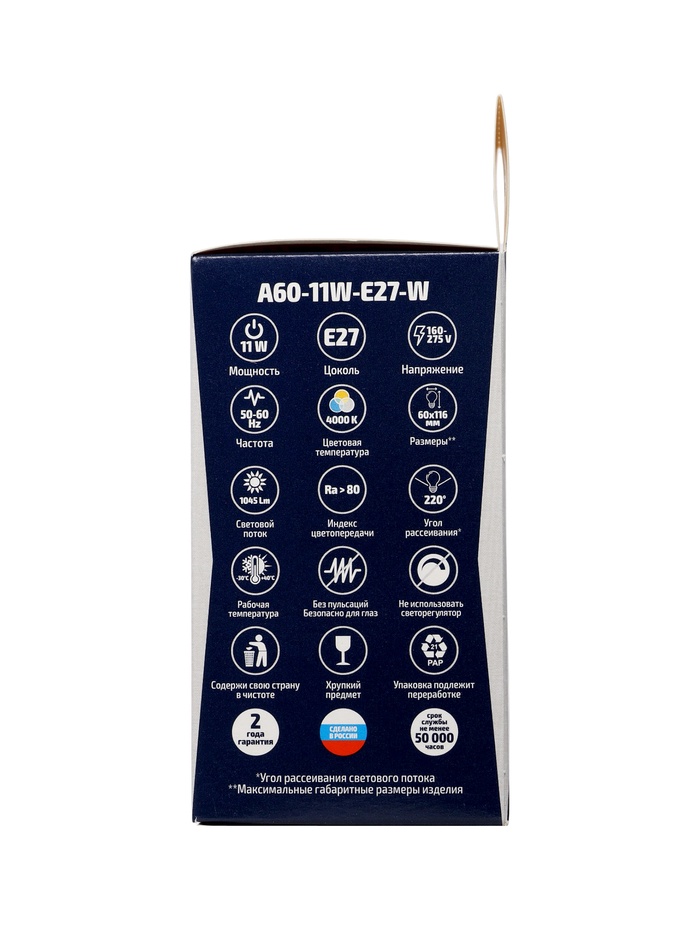 Лампа светодиодная Включай, А60, 11 Вт, E27, 1045 Лм, 4000K, IP20, свечение нейтральное белое, матов