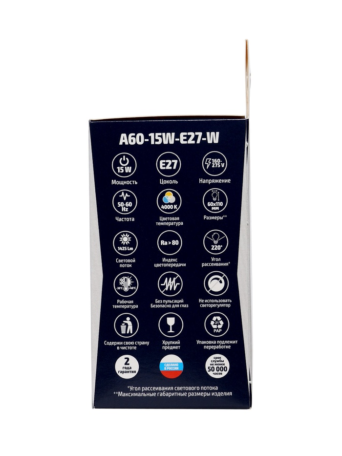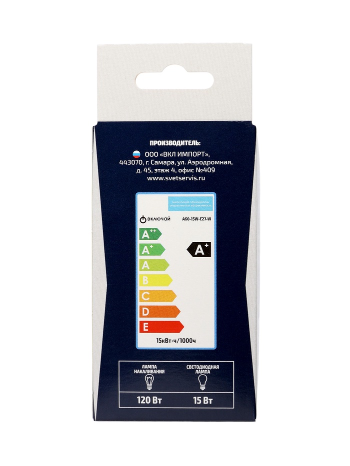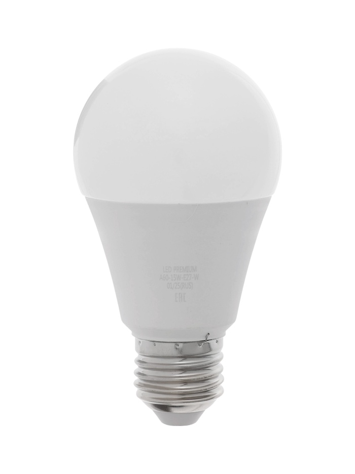 Лампа светодиодная Включай, А60, 15 Вт, E27, 1425 Лм, 4000K, IP20, свечение нейтральное белое, матов