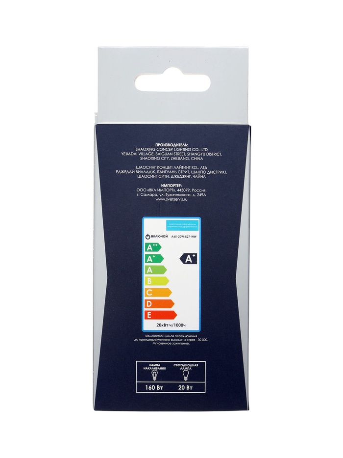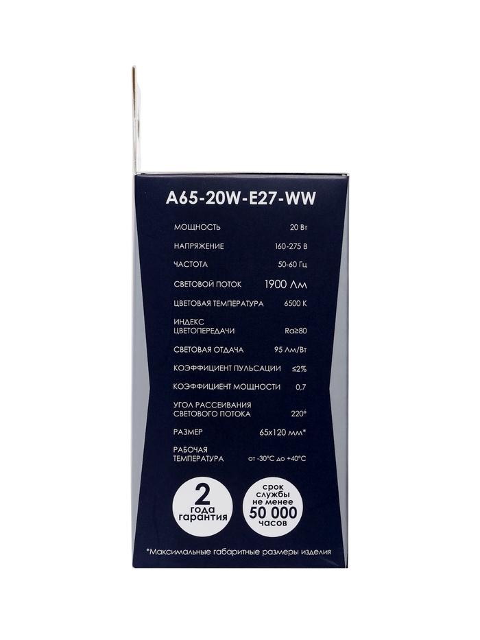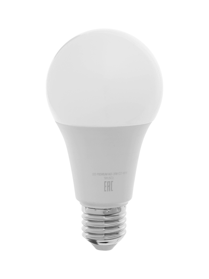 Лампа светодиодная Включай, А65, 20 Вт, E27, 1900 Лм, 6500K, IP20, свечение холодное белое, матовое