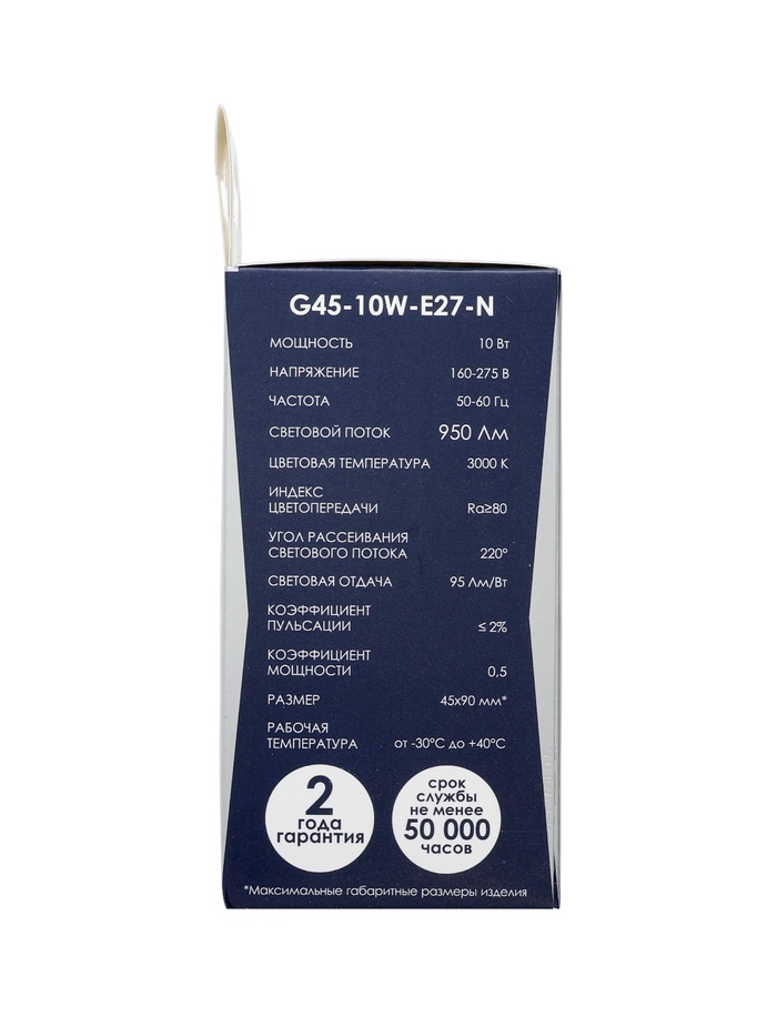 Лампа светодиодная Включай, G45, 10 Вт, E27, 950 Лм, 3000K, IP20, свечение тёплое белое, матовое сте
