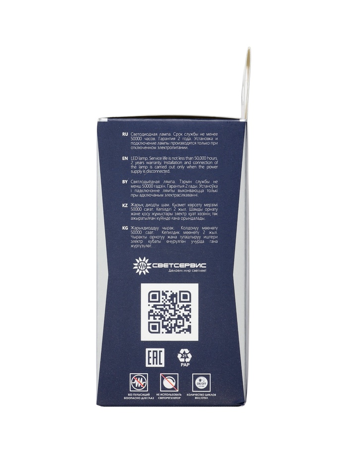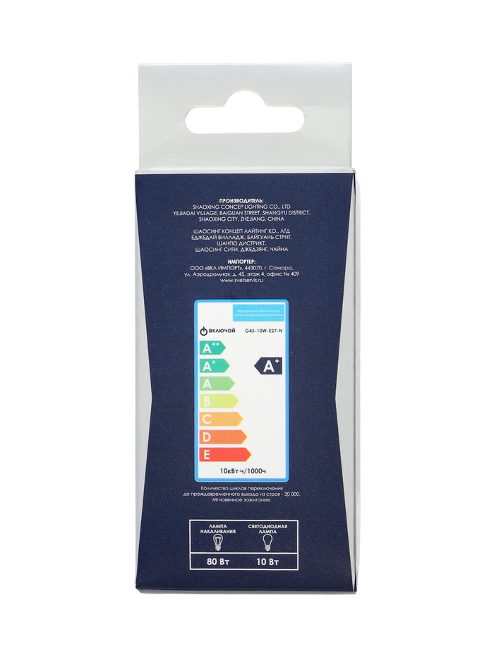 Лампа светодиодная Включай, G45, 10 Вт, E27, 950 Лм, 6500K, IP20, свечение холодное белое, матовое с