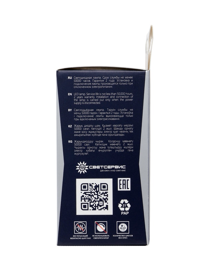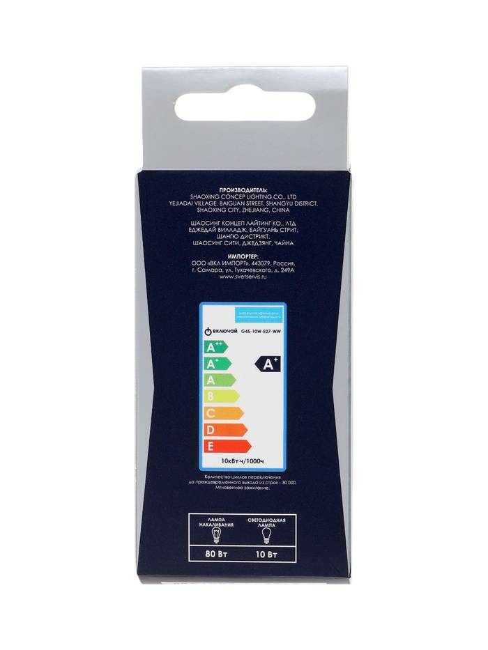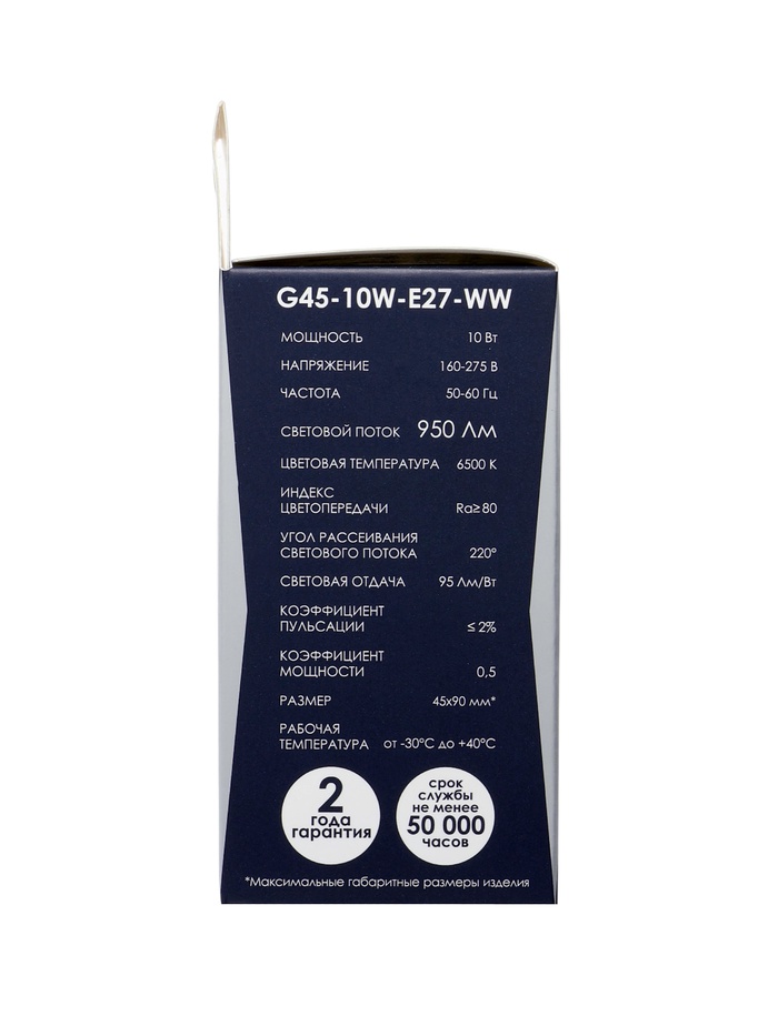 Лампа светодиодная Включай, G45, 10 Вт, E27, 950 Лм, 6500K, IP20, свечение холодное белое, матовое с