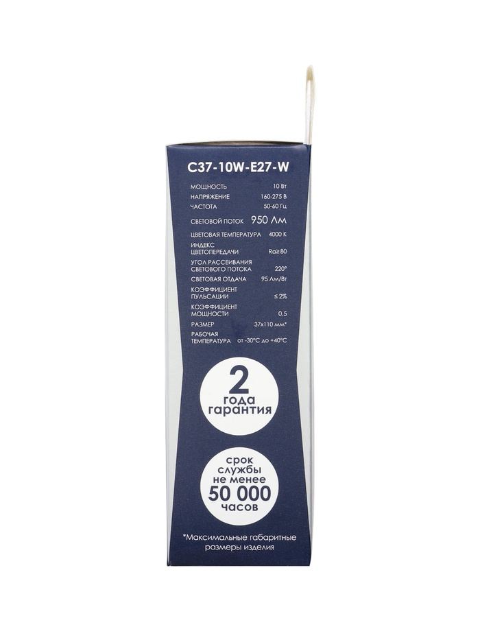 Лампа светодиодная Включай, С37, 10 Вт, E27, 950 Лм, 4000K, IP20, свечение нейтральное белое, матово