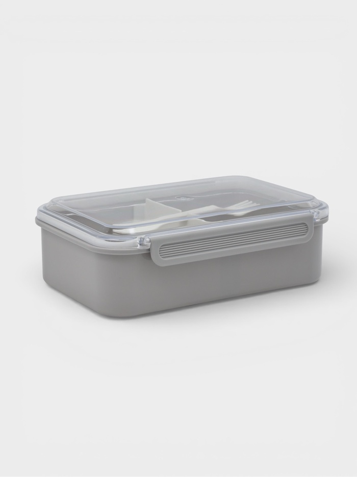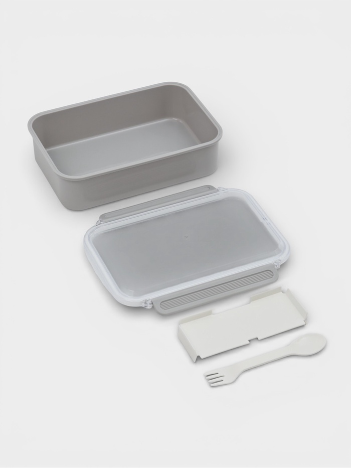 Ланч-бокс «Нордик» на 1,5 л возьмёт с собой полноценный обед без компромиссов. Две ячейки внутри держат горячее и холодное отдельно: суп не размочит хлеб, заправка останется в салате. Двухсторонний прибор убирается под прозрачную крышку — ложка для первого, вилка для второго. Серый корпус и сдержанная форма вписываются в офисный ритм, а объём хватает на сытный приём пищи без перекусов до ужина.