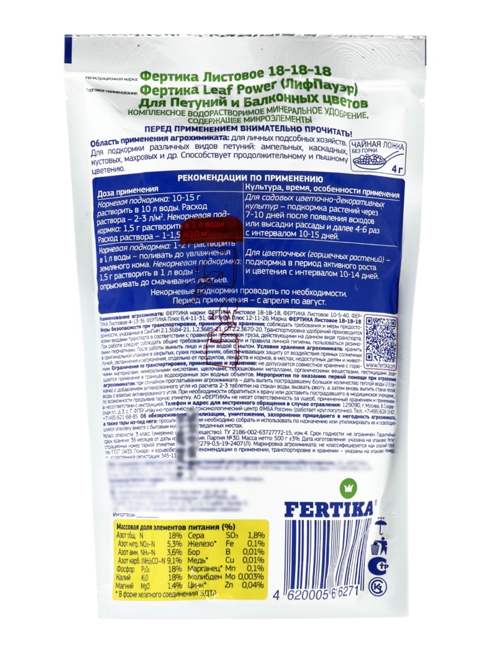 Leaf Power ДЛЯ ПЕТУНИЙ И БАЛКОННЫХ ЦВЕТОВ Дой-Пак 0,5 кг