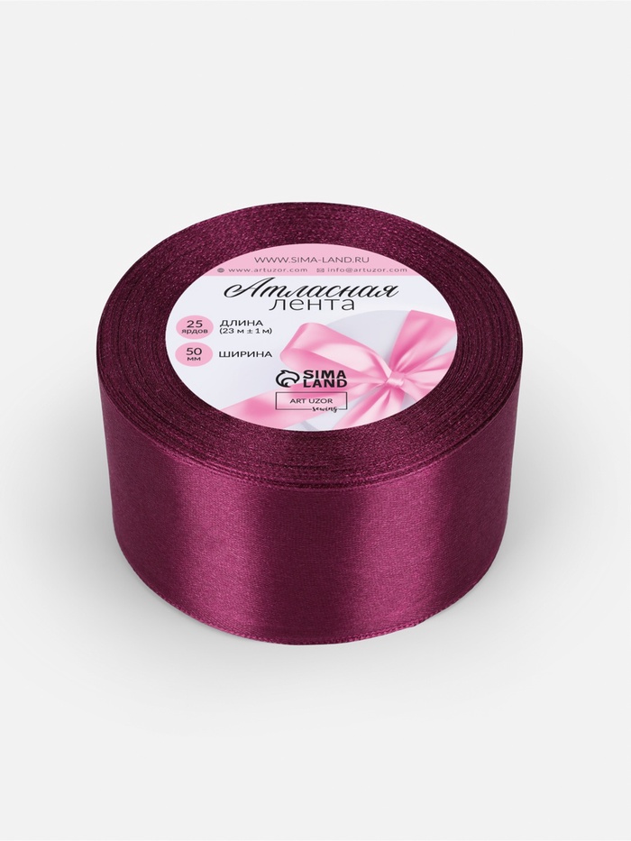 Лента атласная, 50 мм × 23 ± 1 м, цвет баклажановый №252