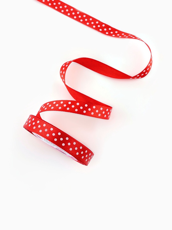 Такая лента подойдёт для оформления праздничной упаковки, создания аксессуаров и рукодельных изделий. Её часто используют в скрапбукинге, для украшения текстиля и предметов интерьера. Благодаря яркому оттенку и рисунку «горошек» она помогает сделать даже простое оформление эффектным.