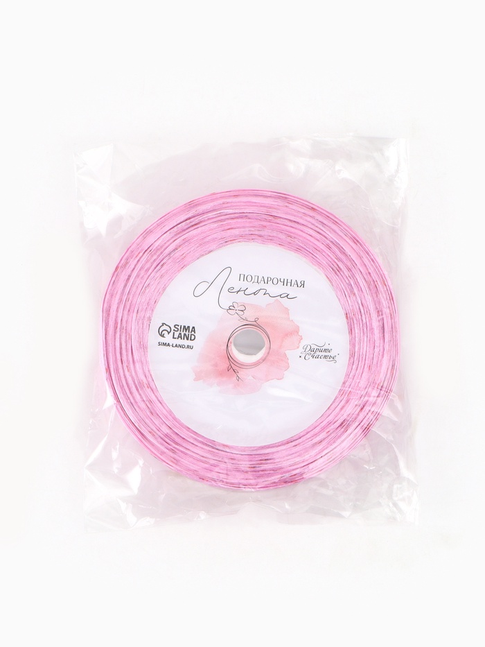 Лента атласная «С 8 марта», 15 мм, 23±1 м, розовая