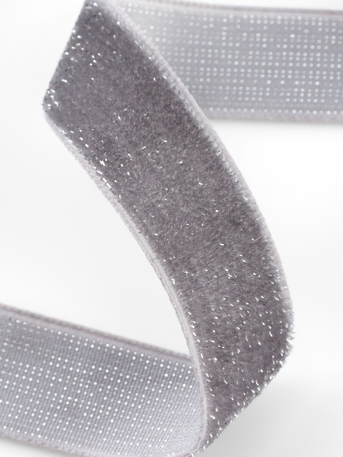 Материал — полиэстер с плотным ворсом, структура устойчива к истиранию, не выцветает и не теряет форму. Люрекс равномерно распределён по полотну, не выскальзывает и не рвётся при резке. Цвет №184 — глубокий серый с холодным отливом, близкий к графитовому, что делает ленту нейтральной, но выразительной. Она не конкурирует с другими элементами, а подчёркивает их.