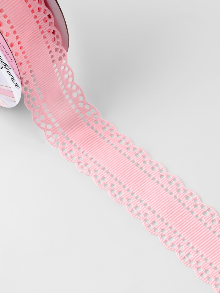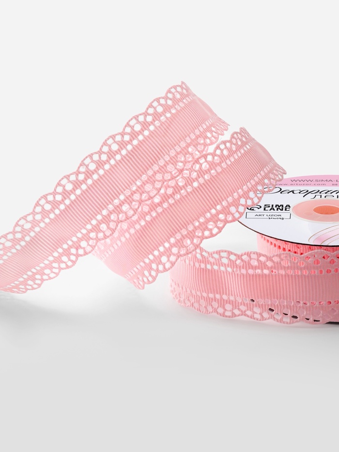 Эта розовая ажурная лента придает проектам нежную объемность и праздничное настроение. Её фигурный край создает эффект кружевной отделки, органично дополняя оформление подарков, скрапбукинг и создание женственных аксессуаров.