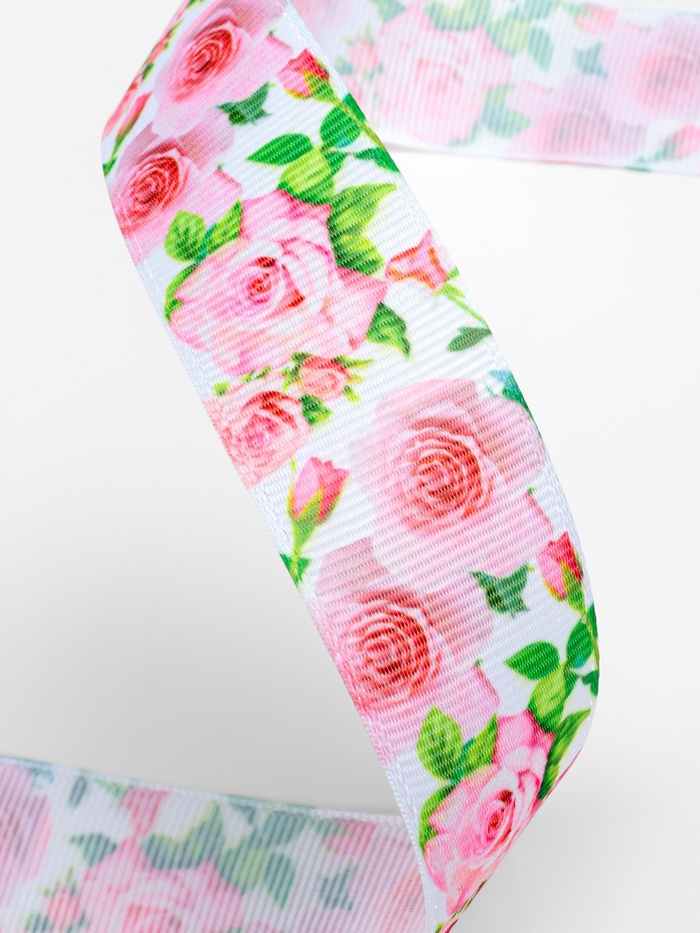 Репсовая лента с розами создаёт нежный цветочный акцент в женских проектах. Объёмный рисунок сохраняет чёткость на текстурированной поверхности, напоминая вышивку. Восемнадцати метров хватит для оформления подарков, весеннего декора или создания серии аксессуаров в романтичном стиле.