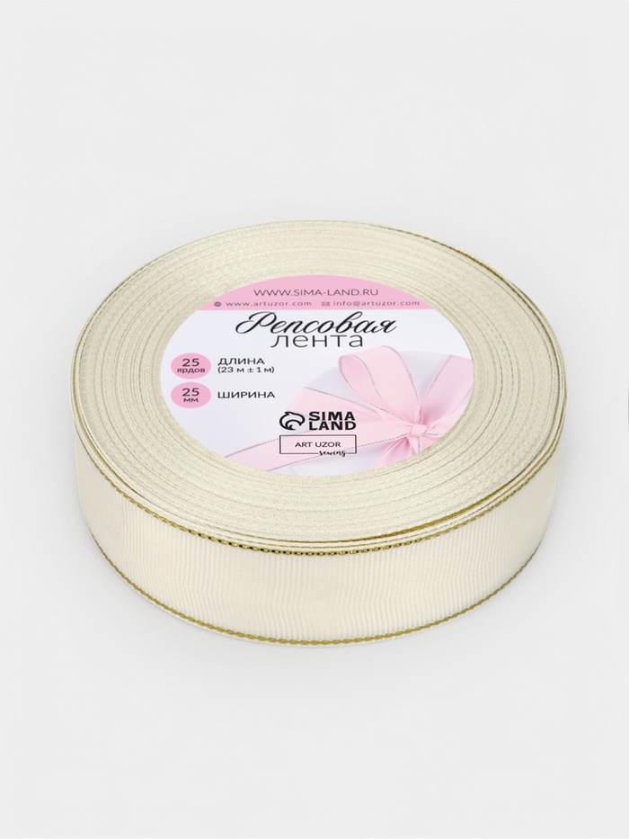 Молочная репсовая лента с золотым люрексом — универсальный материал для оформления подарков, декораций и рукодельных проектов. Ее ширина 25 мм и длина около 23 метров позволяют создавать элегантные украшения, бантовые композиции и интерьерные детали. Гладкая структура и светлый оттенок делают эту ленту подходящей для различных тематик и стилей оформления.