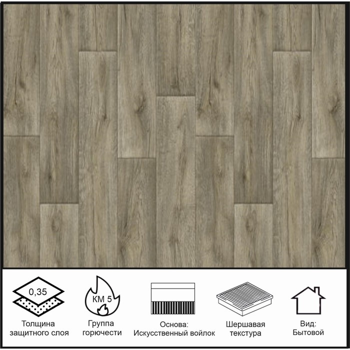 Линолеум бытовой Gladiator Miller 3 ширина 3,5 м длина 3,5 м толщина 4,5 мм, 12,25м2