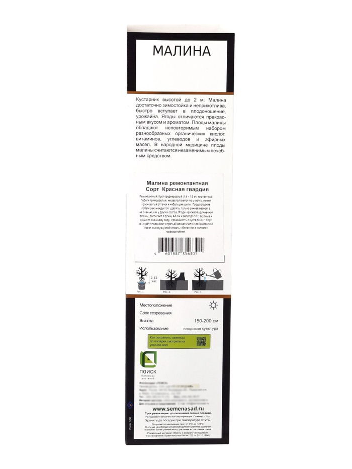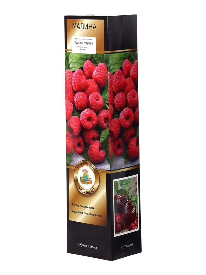 Ремонтантный. Куст среднерослый (140 – 160 см), компактный. Побеги пряморослые, не расползаются по участку, имеют красноватый оттенок и небольшие шипы. Прошлогодние побеги рекомендуется удалять, только ранней весной, а не осенью, как у других сортов. Ягоды красивой удлиненной формы, достигают в длину 4-5 см и весят до 10г, вкусные и яркие по внешнему виду. Урожайность с куста до 3 кг. Сорт начинает плодоносит в третьей декаде июля и до заморозков. Имеет высокую устойчивость к болезням и является морозостойким.