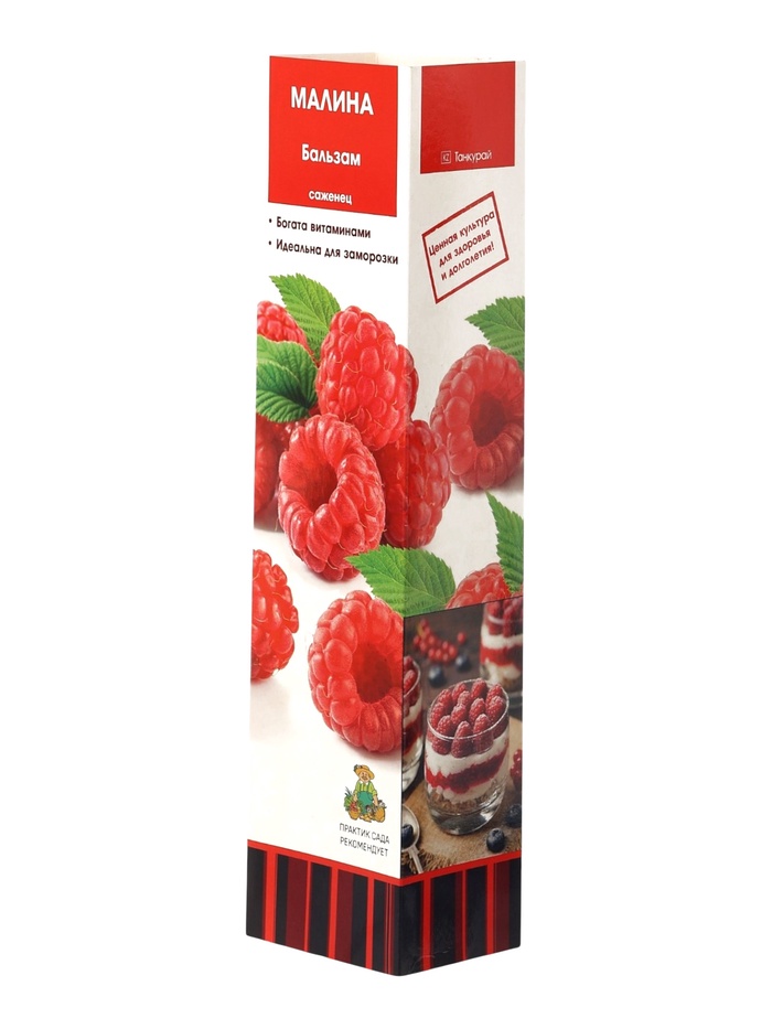 Ягоды малины крупные и очень крупные. Они упругие, плотной структуры, но с сочной мякотью. Вес плодов в сезоне 5-8 грамм, но могут наливаться и до просто огромного показателя в 12-14 грамм. Средние размеры ягод 2,5-3,5 см в длину, а случается вырастают и до 5 см. Кожица тонкая, но крепкая и эластичная, стойкая к механическим повреждениям.
