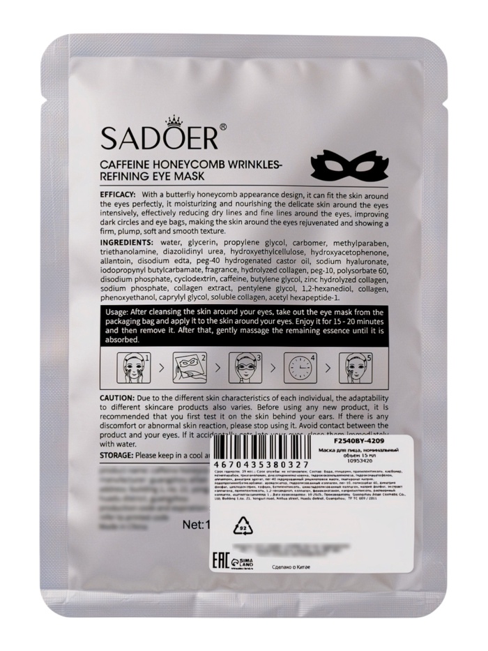 Тканевая маска для кожи вокруг глаз с кофеином и экстрактом меда — это интенсивное средство для ухода за нежной и чувствительной зоной вокруг глаз. Она помогает мгновенно освежить взгляд, уменьшить отёки, тёмные круги и признаки усталости, придавая коже свежесть и ухоженный вид.