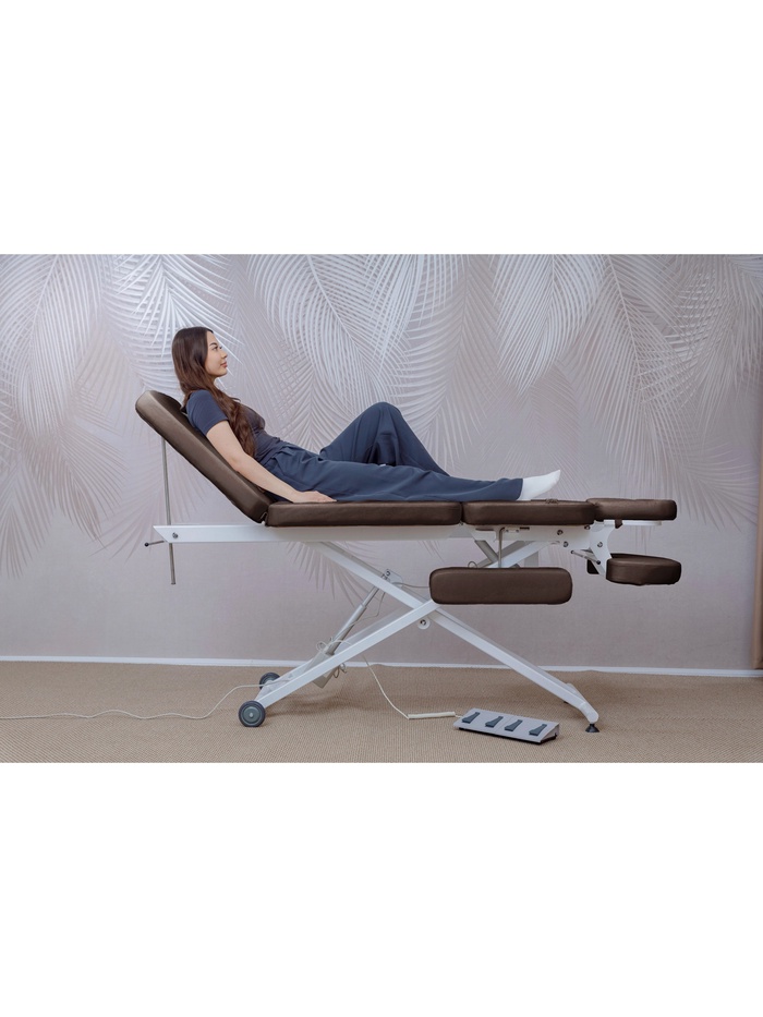 • Дополнительная механическая регулировка: ножной сегмент поднимается и фиксируется под углом до 80°, расширяя возможности применения стола.
