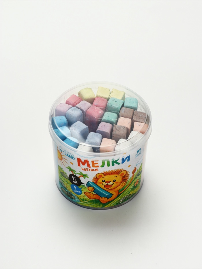 Мелки для асфальта, 27 штук, 9 цветов, брусок в ведёрке, ArtFox STUDY