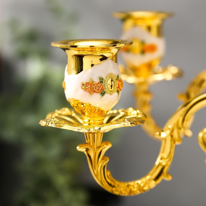 Металлический подсвечник на 5 свечей «Канделябр. Розы. Белая эмаль», золото, 32×30×30 см